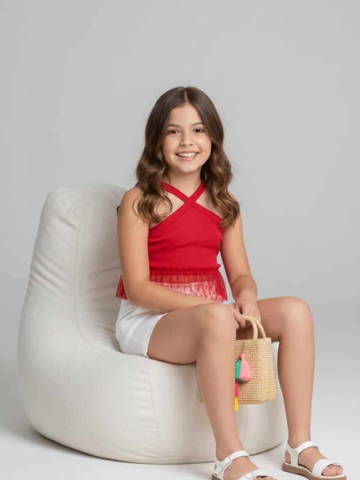 nossa Blusa Rubi une a delicadeza da ribana com a leveza do tule, criando um look mágico,