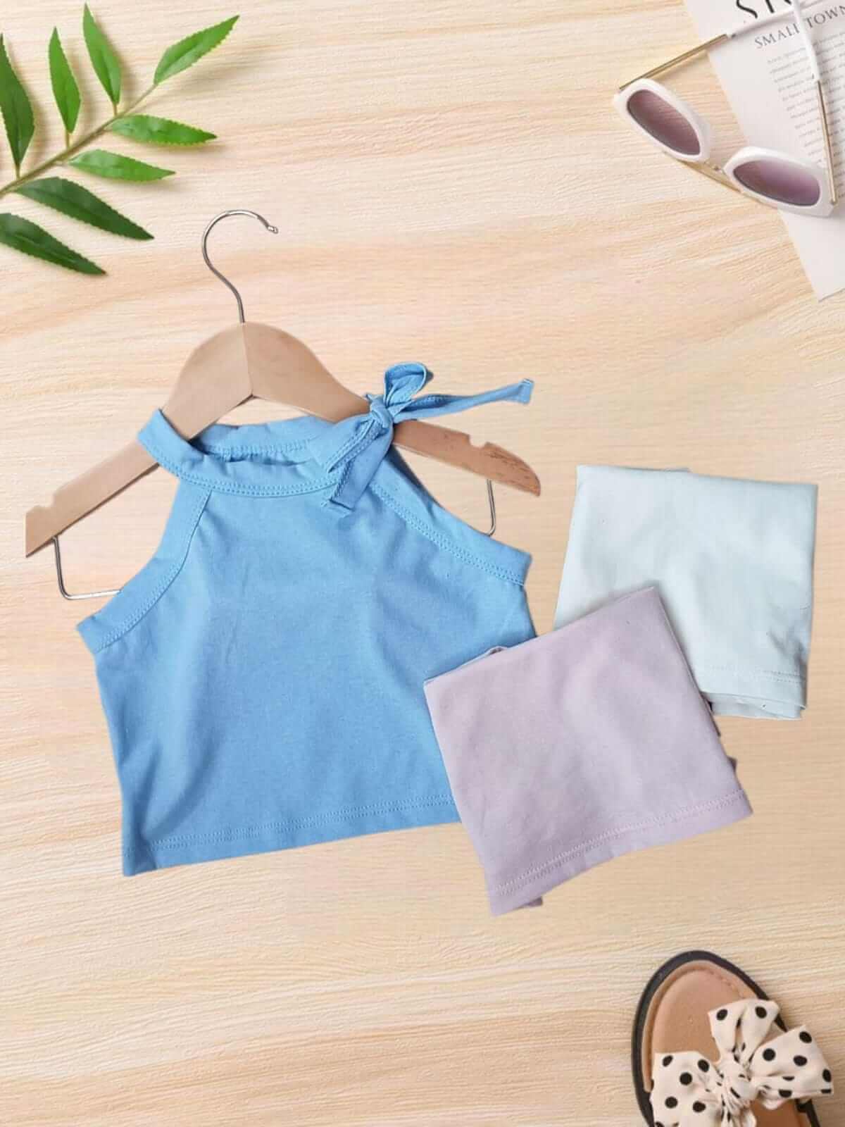 O detalhe especial fica por conta da amarração lateral, trazendo charme e delicadeza ao look das pequenas.