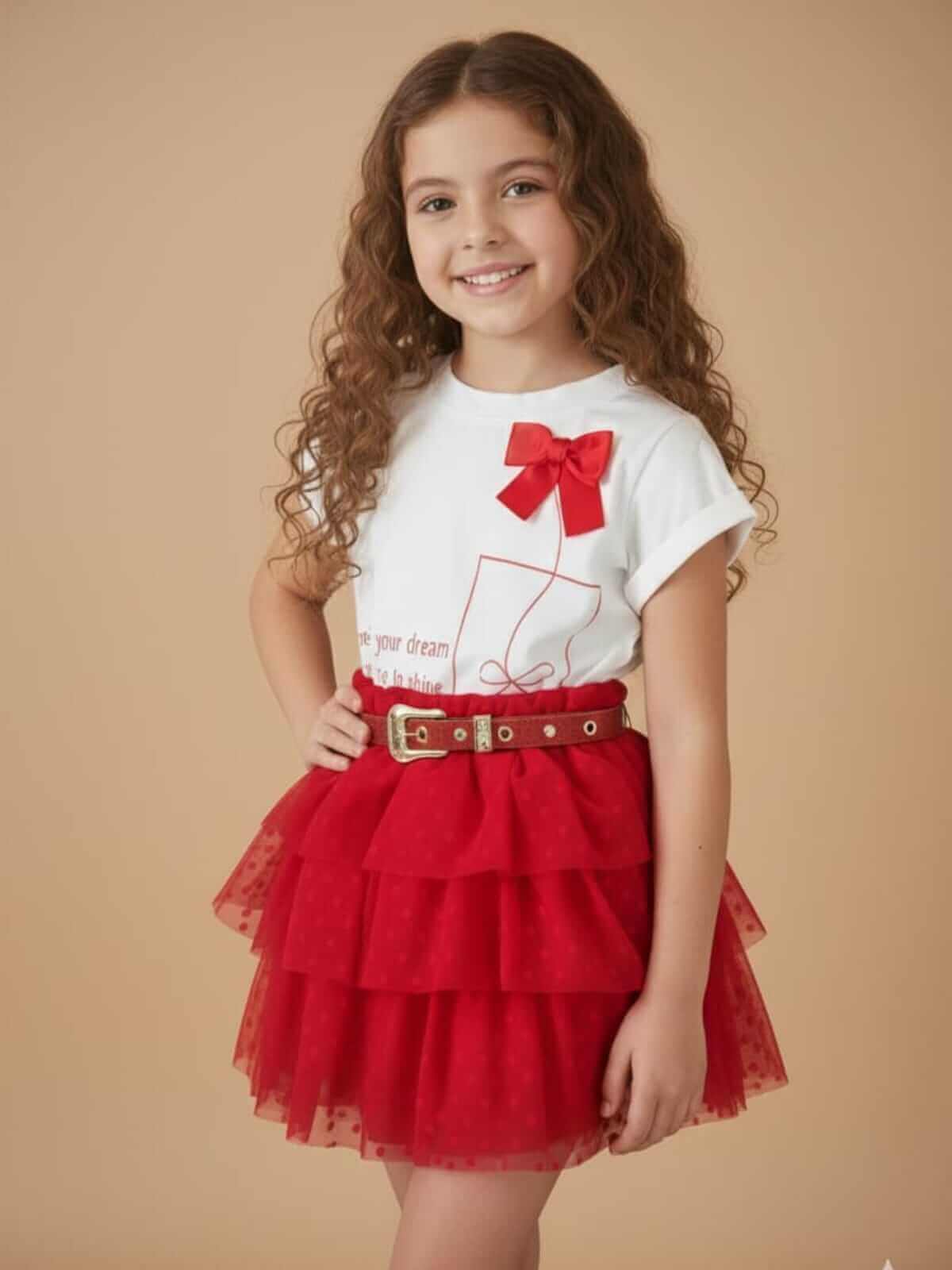 COM COM ESTAMPA ESCRITA EM INGLES E DETALHE DE LAÇO COSTURADO